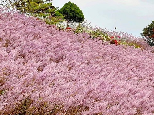 花期每年2、3⽉的粉紅麝香⽊花海⽽聞名。6000坪的花海壯觀地鋪滿整座⼭丘,呈現出浪漫的粉紅⾊調,園區內有著⼤片的花朵綻放,令⼈仿彿置⾝於電影中的夢幻花園。尤其是粉紫⾊的花海,更是吸引了許多遊客前來拍照打卡。這裡除了麝香⽊花海外,還有樹玫瑰、九重葛、風鈴⽊、許願藤等花卉供遊客欣賞,是⼀個適合家庭、情侶或朋友聚會的好去處。